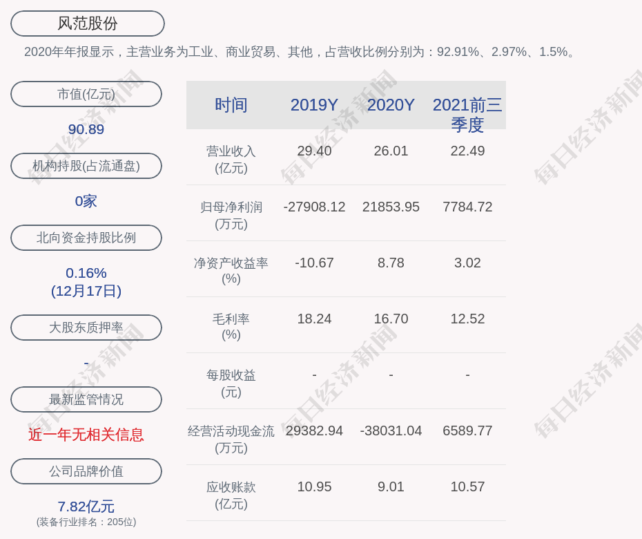 2020年年報顯示,風(fēng)范股份的主營業(yè)務(wù)為工業(yè)、商業(yè)貿(mào)易、其他,占營收比例分別為:92.91%、2.97%、1.5%。