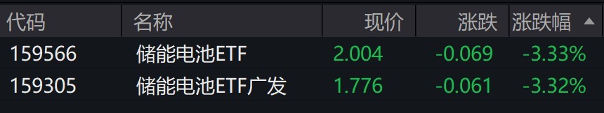 受盤面影響,跟蹤國證新能源電池指數(shù)的儲能電池ETF跌超3%。