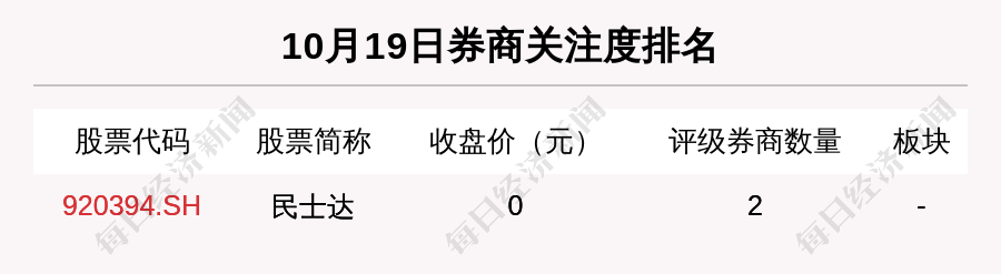 從券商對(duì)個(gè)股的關(guān)注程度來看,有1只個(gè)股獲得多家券商關(guān)注,券商關(guān)注數(shù)量排名居前的個(gè)股是民士達(dá)(920394.SH)。
