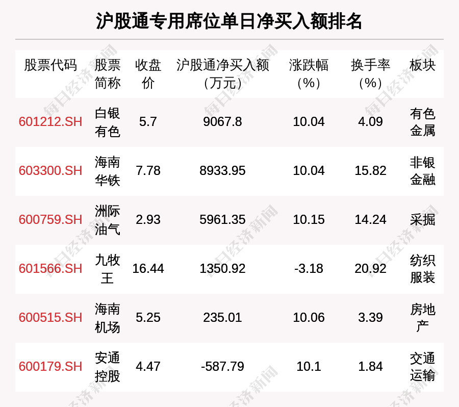 在龍虎榜中,涉及滬股通專用席位的個(gè)股有6只,白銀有色的滬股通專用席位凈買入額最大,凈買入9067.8萬(wàn)元。