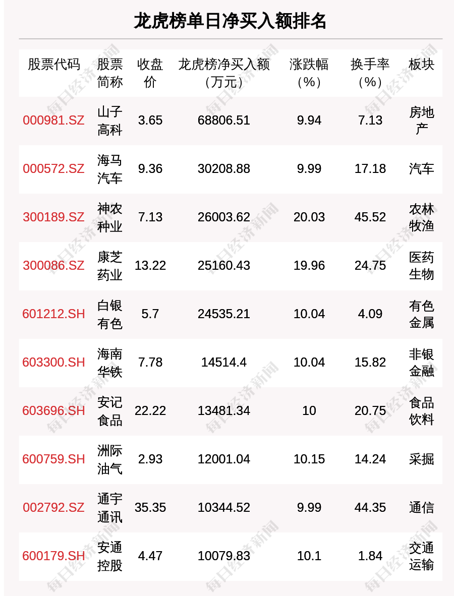 每經(jīng)AI快訊,12月22日,共有43只個(gè)股上榜龍虎榜,山子高科龍虎榜單日凈買入額最多,達(dá)6.88億元。