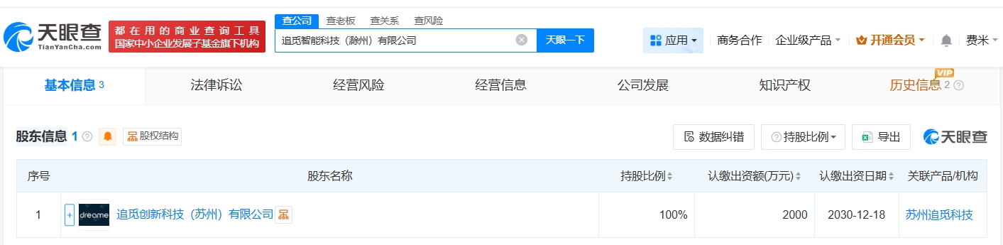 每經AI快訊,天眼查App顯示,近日,追覓智能科技(滁州)有限公司成立,法定代表人為朱春,注冊資本2000萬元人民幣。經營范圍包括智能機器人的研發(fā)、智能機器人銷售、工業(yè)機器人制造等,由追覓創(chuàng)新科技(蘇州)有限公司全資持股。