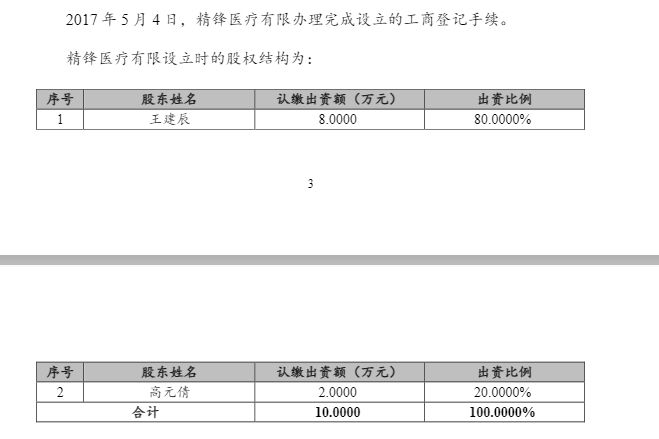 2017年5月4日,青年節(jié),王建辰和高元倩夫婦在深圳認(rèn)繳出資十萬元,注冊成立了精鋒醫(yī)療。