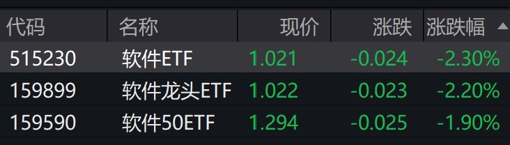 受盤面影響,軟件相關(guān)ETF跌約2%。