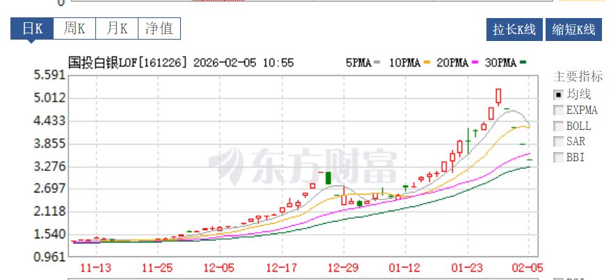 與此同時,2月5日,國投白銀LOF復(fù)牌再度跌停,為連續(xù)第四日復(fù)牌跌停,報3.443元,最新貼水率為37.13%。