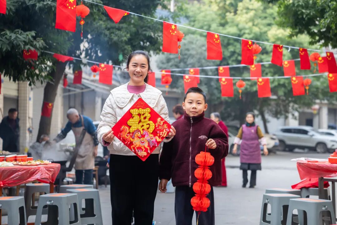 在蒸騰的煙火氣之外,鄰里們還自發(fā)張羅起節(jié)日氛圍的營造——掛燈籠、貼福字,將團圓的儀式感細細織入街巷的細微角落。