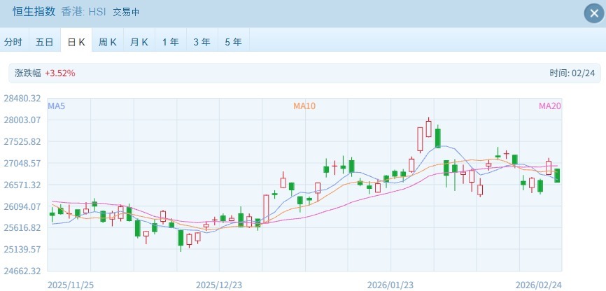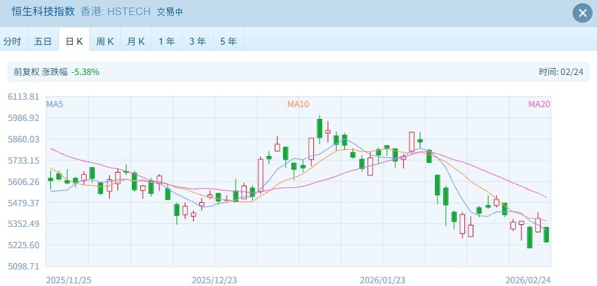 今日(2月24日),港股開盤后呈現(xiàn)震蕩走弱態(tài)勢(shì),受隔夜美股大幅回調(diào)拖累,主要股指集體低開,隨后持續(xù)下探,市場(chǎng)呈現(xiàn)結(jié)構(gòu)性分化格局。截至9時(shí)38分,恒生指數(shù)與恒生科技指數(shù)均出現(xiàn)明顯下跌,部分板塊逆勢(shì)異動(dòng),個(gè)股表現(xiàn)分化顯著。