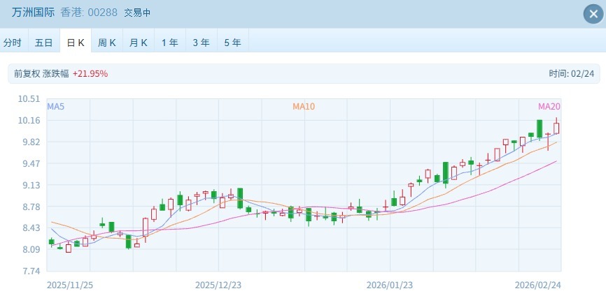 個(gè)股表現(xiàn)上,恒基地產(chǎn)、萬州國(guó)際、中國(guó)石油股份領(lǐng)漲恒指成分股;泡泡瑪特、瀚森制藥、阿里健康領(lǐng)跌恒指成分股。萬州國(guó)際盤中還創(chuàng)出歷史新高。
