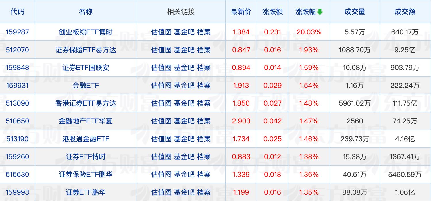具體來(lái)看,創(chuàng)業(yè)板綜ETF博時(shí)尾盤異動(dòng)。大金融股逆勢(shì)走強(qiáng),保險(xiǎn)、銀行板塊領(lǐng)漲,多只證券ETF、金融ETF漲幅居前。