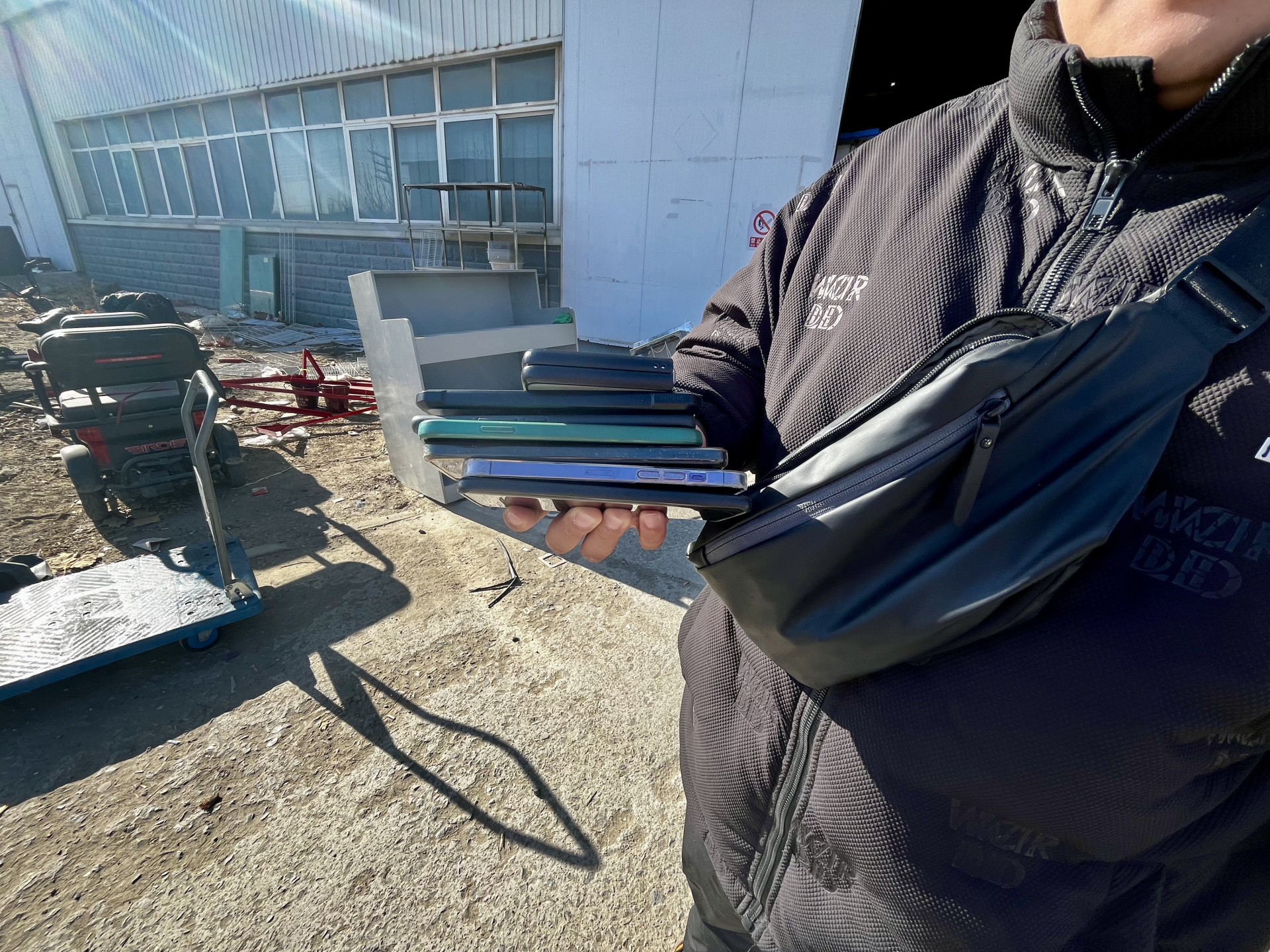 說(shuō)話間,他的手機(jī)又響了。這是不到半小時(shí)內(nèi)的第三通電話,來(lái)電的都是咨詢?cè)O(shè)備回收的餐飲店主。安大為從斜挎的腰包里掏出一沓手機(jī),這些手機(jī)(雙卡雙待)里存著十多萬(wàn)個(gè)餐飲老板的微信。