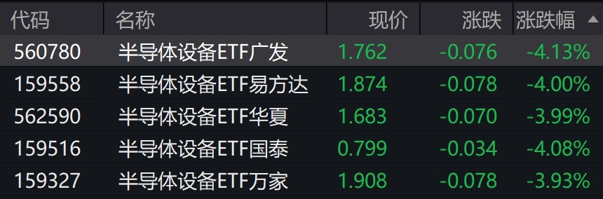 受盤面影響,半導(dǎo)體設(shè)備相關(guān)ETF跌約4%。