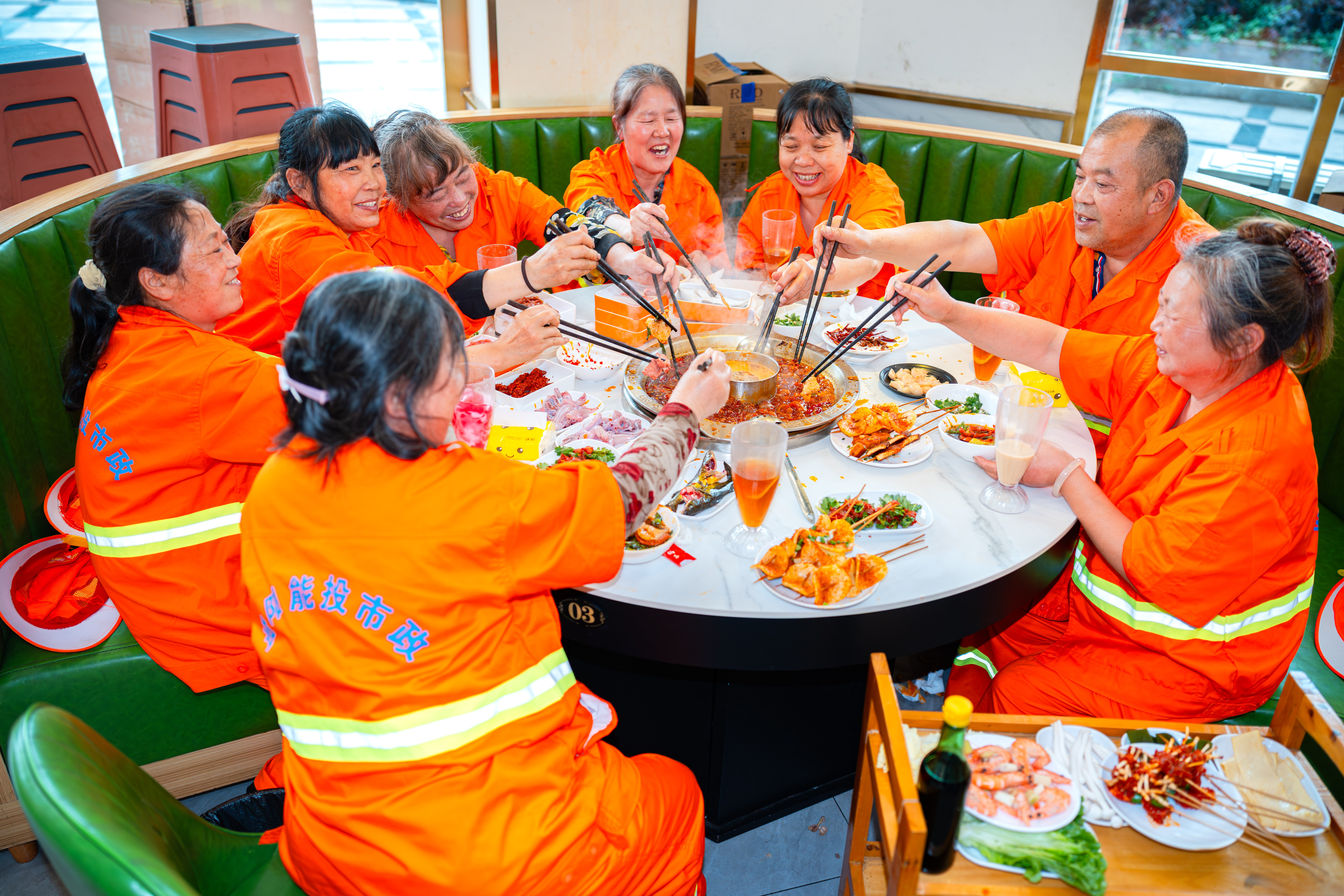 “不光吃火鍋自在多了,”王曉莉接過話,“路上干活的時候也不一樣了。冬天掃地,面館老板會主動喊我們進去坐;夏天掃街,藥店也會自發(fā)給我們倒水?!?/p>